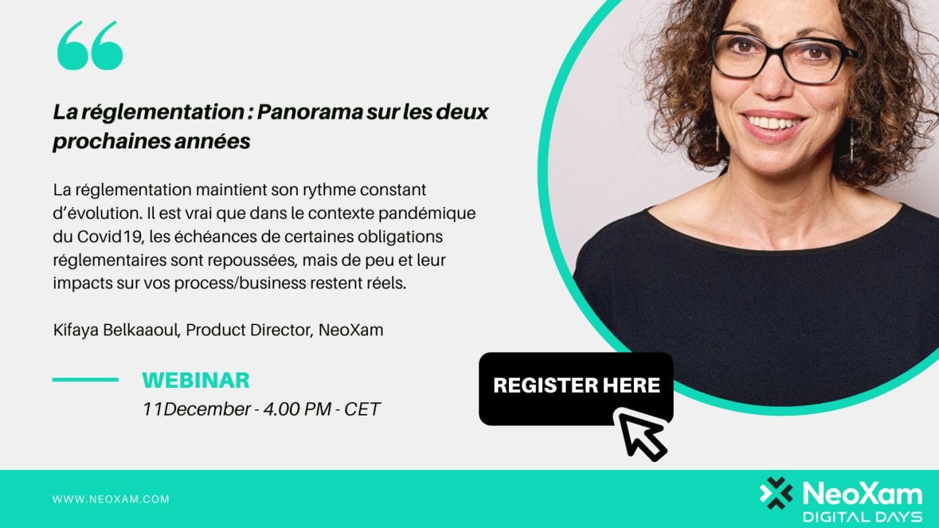 Participez le vendredi 11 décembre à 16h à notre webinar pour en savoir plus sur les dernières actualités réglementaires.