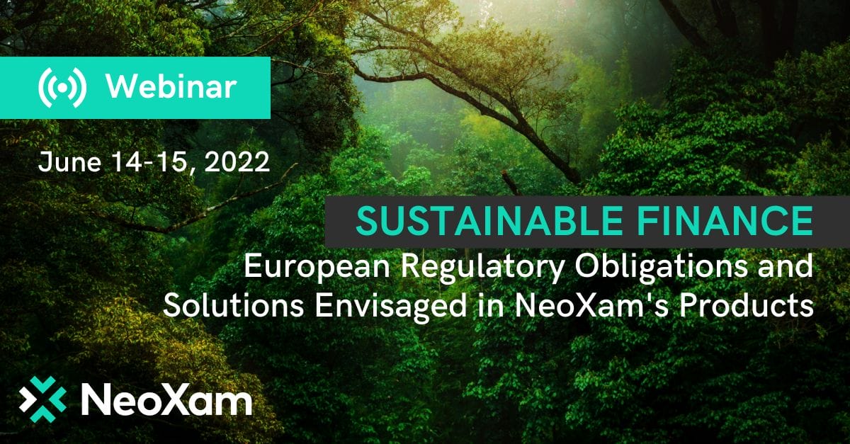 NeoXam is delighted to organize a webinar on Sustainable Finance which will take place on June 14 & 15.
